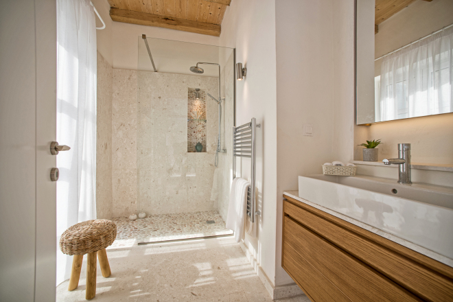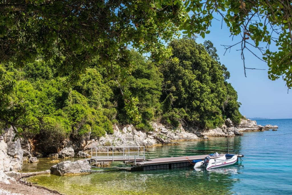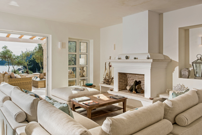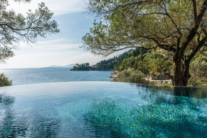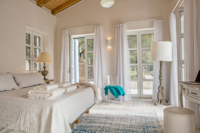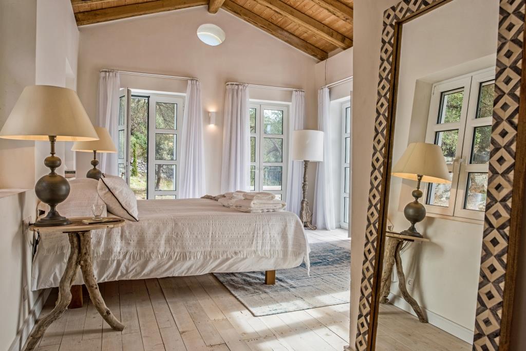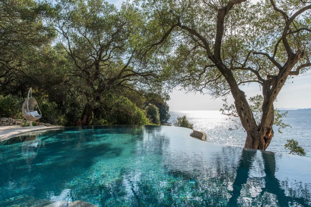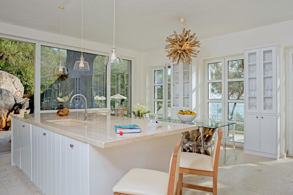 The Beach House is a stunning new house, unsurpassable in terms of location and finish. With increasingly rare direct beach access and private jetty, this beautifully designed villa sleeps up to 12 guests in 6 wonderful en-suite bedrooms. Generous terraces make the most of the views overlooking the enticing infinity pool to the Ionian Sea beyond. Interiors are elegant and airy, finished in cool tones with vibrant accents to complement the house’s amazing setting and the Corfiot inspired building materials used throughout. Guests can walk to both Agni and Kalami bays with their sought after tavernas. Hire a boat for your stay and you won’t even need a car. Bliss.