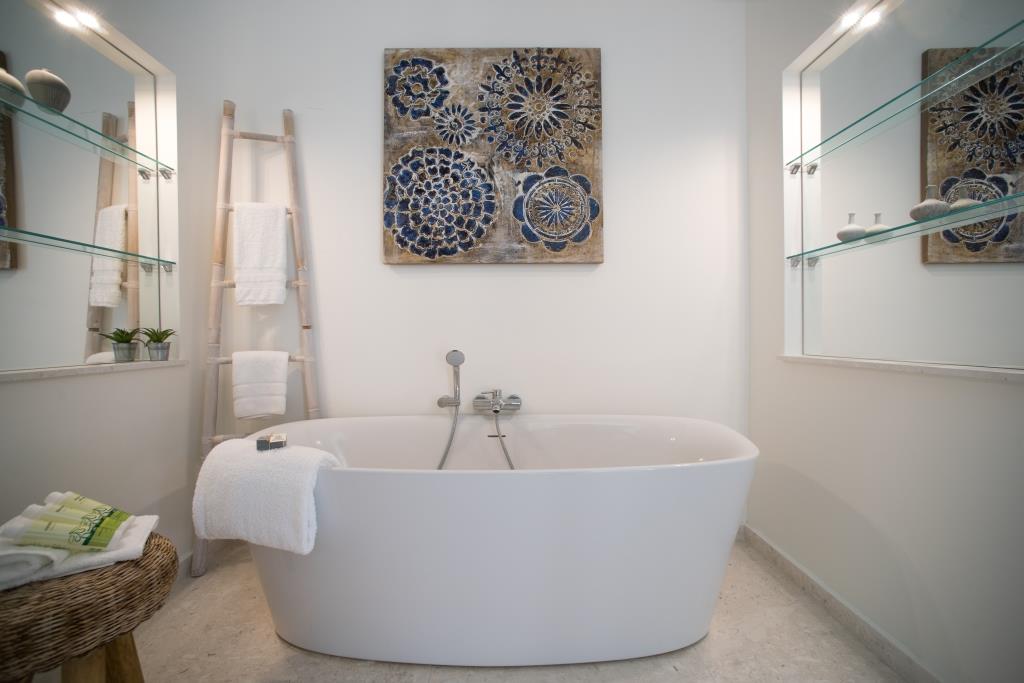 Bedrooms: Master bedroom with super-king bed, en suite shower room and large private terrace with outside bath and pergola covered daybed.