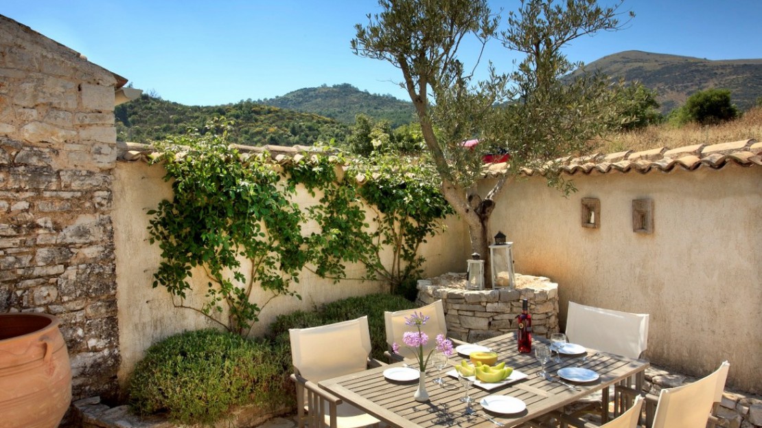 PLEASE NOTE THAT PRICES FOR LILIUM INCLUDE FLIGHTS AND CAR HIRE. A charming, two bedroom house, Lilium is the last in a row of three adjoining houses with fine views across the village and countryside to the sea. Comfortable and stylish with an open-plan living area, Lilium has a plunge pool on its upper terrace with private courtyard below. The house opens up into the middle of the village with its beautiful wisteria-covered arches and gardens leading down to the Estate’s shared pool, spa and restaurant. The acclaimed Rou Estate in North East Corfu is a unique heritage site. Built over 200 years ago the village, consisting of 16 houses plus outbuildings, was abandoned before being brought back to life by Dominic and Claire Skinner in 2005. Exquisite and individually rendered Corfiot houses with contemporary finishes make this hill-side sanctuary, with panoramic views of the Ionian Sea and the distant Albanian mountains, the perfect place for those looking to escape and relax. “The views, service and seclusion make [The Rou Estate] Corfu’s top retreat” Telegraph 2016.